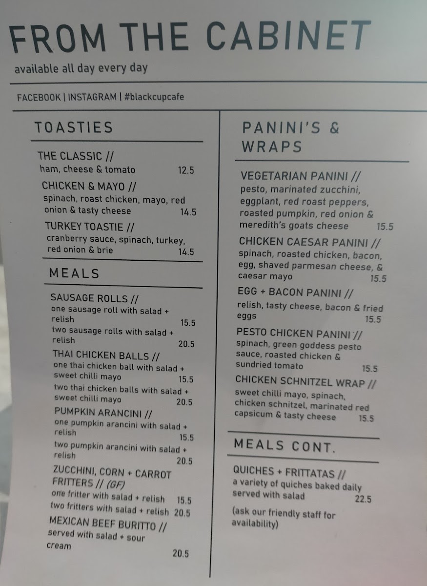 Welcome to Black Cup Cafe, a charming spot nestled in East Geelong, where culinary delight meets community warmth. The menu offers a delightful blend of breakfast and lunch options, featuring the renowned La Madre Toast served with your choice of jam, Vegemite, or peanut butter, alongside hearty choices like the Big Vegie Brekkie or Bacon + Eggs for egg enthusiasts. Customers rave about the toasted chicken Caesar sandwich, highlighted for its perfect blend of crunchy and chewy textures, while the café's arancini receives accolades for its scrumptious filling of chicken, leek, and mushrooms. With a focus on excellent coffee, friendly service, and accommodating dietary needs—like gluten-free options—Black Cup Cafe is a must-visit for food lovers. Whether you’re seated indoors or soaking up the sunshine outside, each dish promises to leave an indelible mark on your culinary journey.